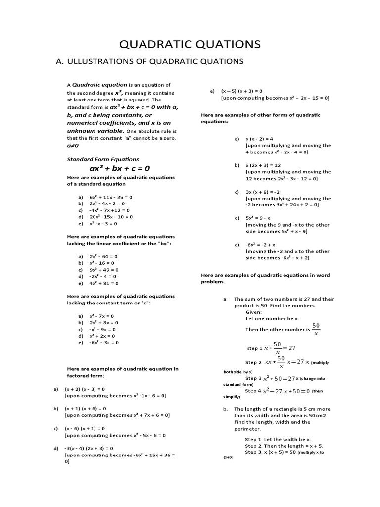Grade 9 Math Module 1 Quadratic Equations And Inequalities Answer Key Part 1 Youtube