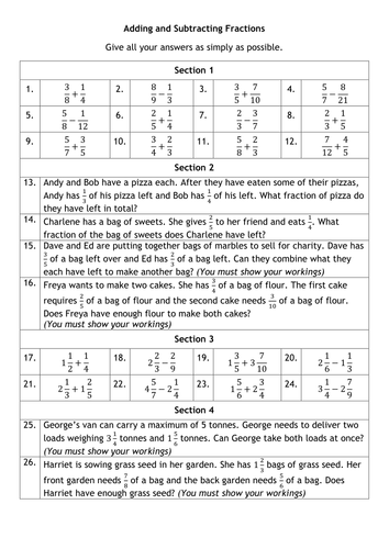 Adding And Subtracting Fractions Differentiated Teaching Resources