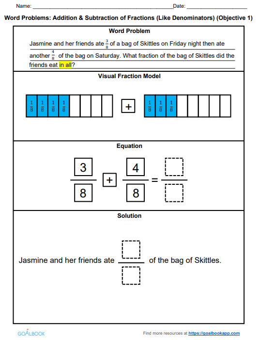 Word Problems Addition Subtraction Of Fractions Math Anchor Page Iep Goal And Objectives Goalbook Toolkit